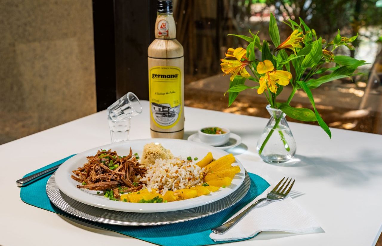 Já no Iacina Restaurante, na 708 Sul, o menu de almoço custa R$ 59,90. As entradas são a Asinha Pavulagem, com asinhas de frango fritas em molho picante de melado de tucupi e pimenta murupi, servidas com alface americana, ou o Pico de Gallo Pai d’Égua, opção vegana preparada com feijão manteiguinha de Santarém, milho fresco, pico de gallo e abacate, acompanhada de nachos. Nos pratos principais, aparecem o Jambalaya do Pará, releitura amazônica do prato de uma panela só com arroz, carne suína, linguiça, camarão seco, tucupi e jambu; o Lambalaya Vegano, feito com arroz, tofu defumado, berinjela e tomates assados com gergelim, tucupi e jambu; ou o Filé de coxa e sobrecoxa ao molho mole mexicano de especiarias e cacau, servido com mil-folhas de batata, farofa de milho e conserva de cebola. Para a sobremesa, o público pode escolher entre o Pouding Chômeur de macaxeira, bolo embebido em calda de açúcar mascavo e laranja, ou Cheesecake de goiabada.