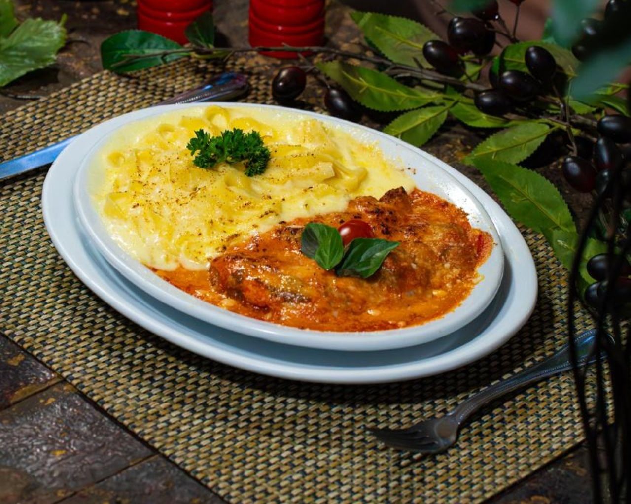 No Bella e Rô Restaurante, no Setor Hoteleiro Norte, o menu é servido no almoço por R$ 59,90. As entradas são a Torre de Pisa, com mini pizzas de calabresa, tomate seco, queijo e azeitona, ou o Bolinho Baião de Dois, preparado com bolinhos dourados de feijão e arroz recheados com queijo e acompanhados de geleia de pimenta. Como prato principal, o cliente pode escolher entre o Brasil Penta, com carne desfiada e acebolada à moda da casa, servida com arroz com castanhas, farofa de banana, vinagrete e filetes de mandioca cozida e frita; o Alemanha Tetra, que traz salada alemã de batatas com aipo acompanhada de sobrecoxa temperada com ervas e laranja, finalizada com manteiga assada em forno brando; ou o Capelete da Azzurra, massa artesanal recheada com damasco, alho-poró e queijo gorgonzola, servida em molho espesso de tomate. Para a sobremesa, as opções são o Folhadinho Brasileiro, com camadas de massa crocante, mousse de chocolate 60%, creme de confeiteiro e doce de leite da casa, ou o Show de Bola, tortinha de massa amanteigada recheada com creme especial de baunilha.