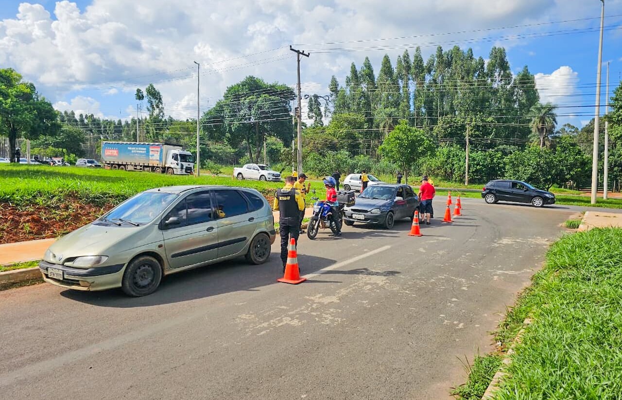 Os motoristas que trafegam em carros e motos devem redobrar a atenção no trânsito por causa das condições adversas de tempo que elevam o risco de acidentes, como o asfalto molhado, excesso de velocidade e baixa visibilidade. Blitze educativas com entrega de materiais com orientações. Foto: Divulgação/Detran-DF