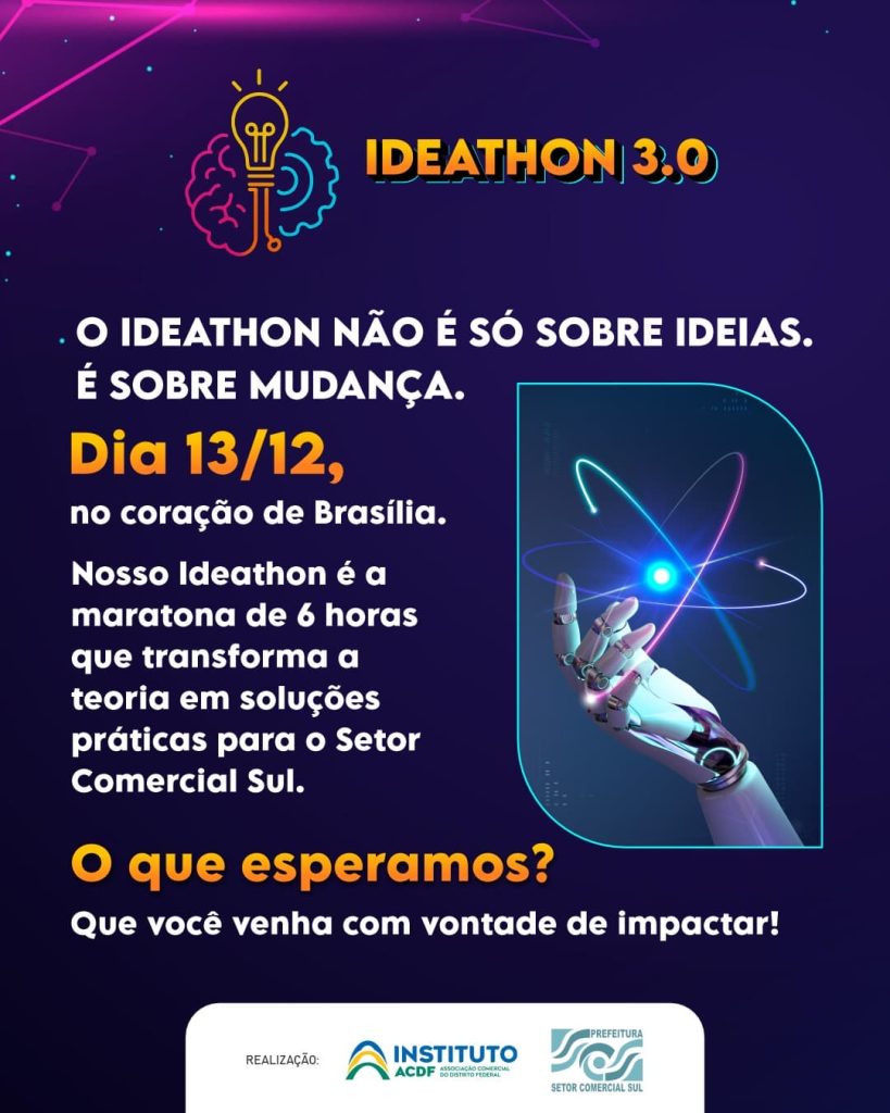 📍 Local: Setor Comercial Sul, Quadra 6Junte sua equipe e inscreva-se no link:INSCRIÇÕES AQUI!🏆 Prêmio em dinheiro para projetos destaques💡 Chame sua equipe e venha viver esse dia de criatividade e colaboração