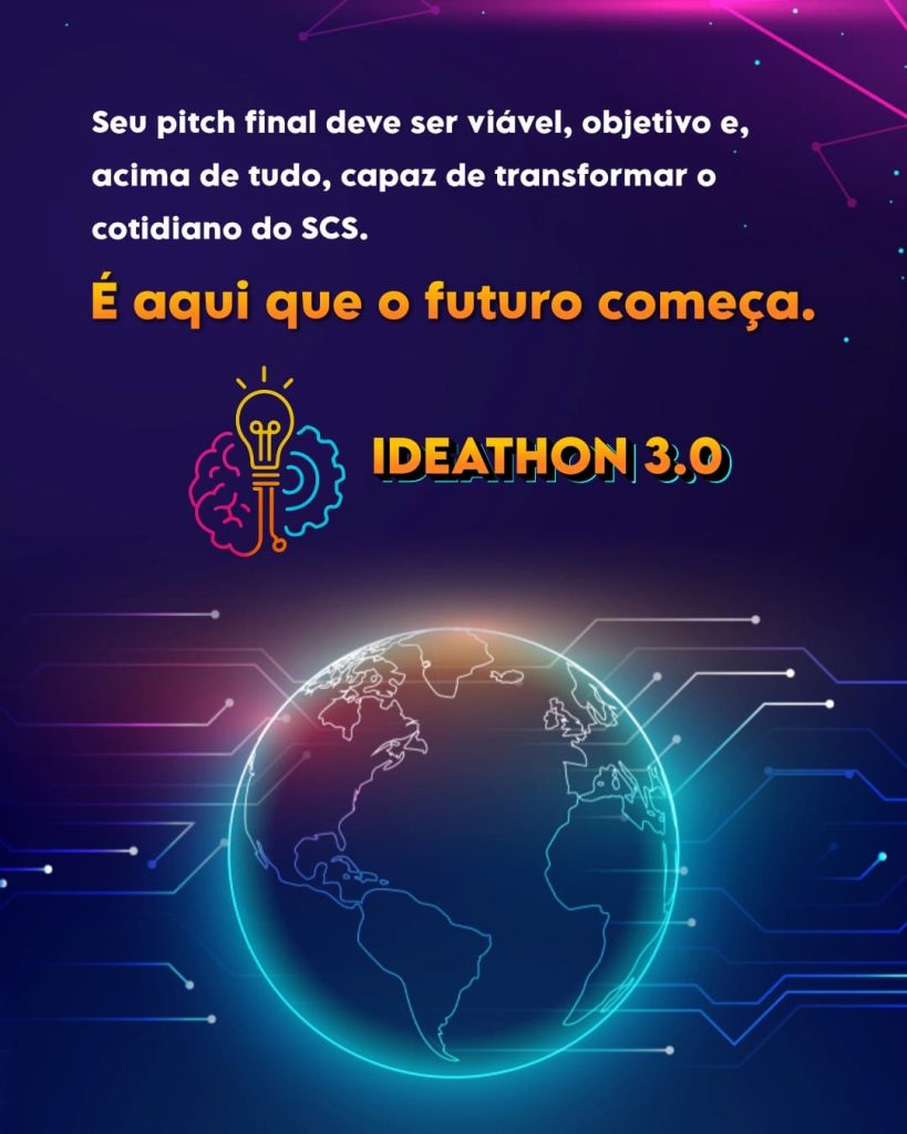 Para quem não está familiarizado, um Ideathon é uma maratona de ideias. Diferente de um Hackathon (focado puramente em código), o Ideathon 3.0 propõe uma maratona criativa e tecnológica de 6 horas. O objetivo é reunir mentes brilhantes das áreas de tecnologia, comunicação, design e audiovisual para desenhar soluções práticas, objetivas e inovadoras para os desafios urbanos do SCS.