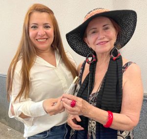 A Profª Rachel Nariyoshi, recebeu cada confreira com sua habitual simpatia e elegância. Durante o almoço, a diversão foi garantida com os sorteios. Raquel Cristine foi a felizarda a ganhar uma caixa de rolhas, e Odete Piccoli levou para casa um porta-perfumes, sorteado pela confreira Adriana Campelo. Foi um almoço memorável, que reforçou os laços de amizade e a alegria de compartilhar bons momentos à mesa. A anfitriã Viviane Samostano presenteou as Amigas do Vinho com o brigadeiro de chocolate branco Capim Santo e um terço que já veio abençoado.