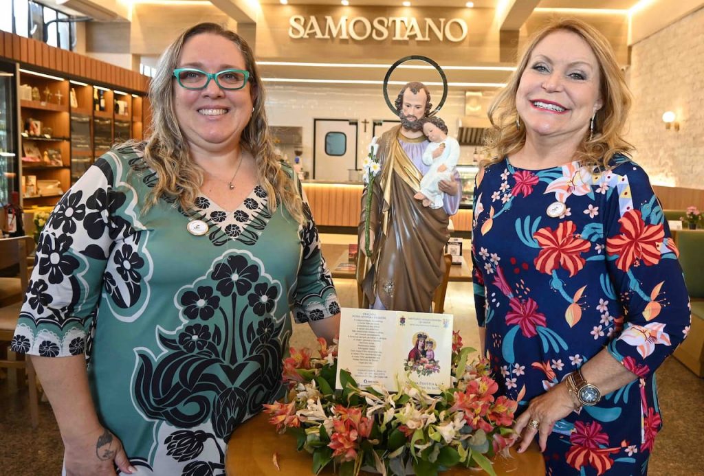 Viviane Samostano e a Profª Rachel Nariyoshi com as bênçãos de São José