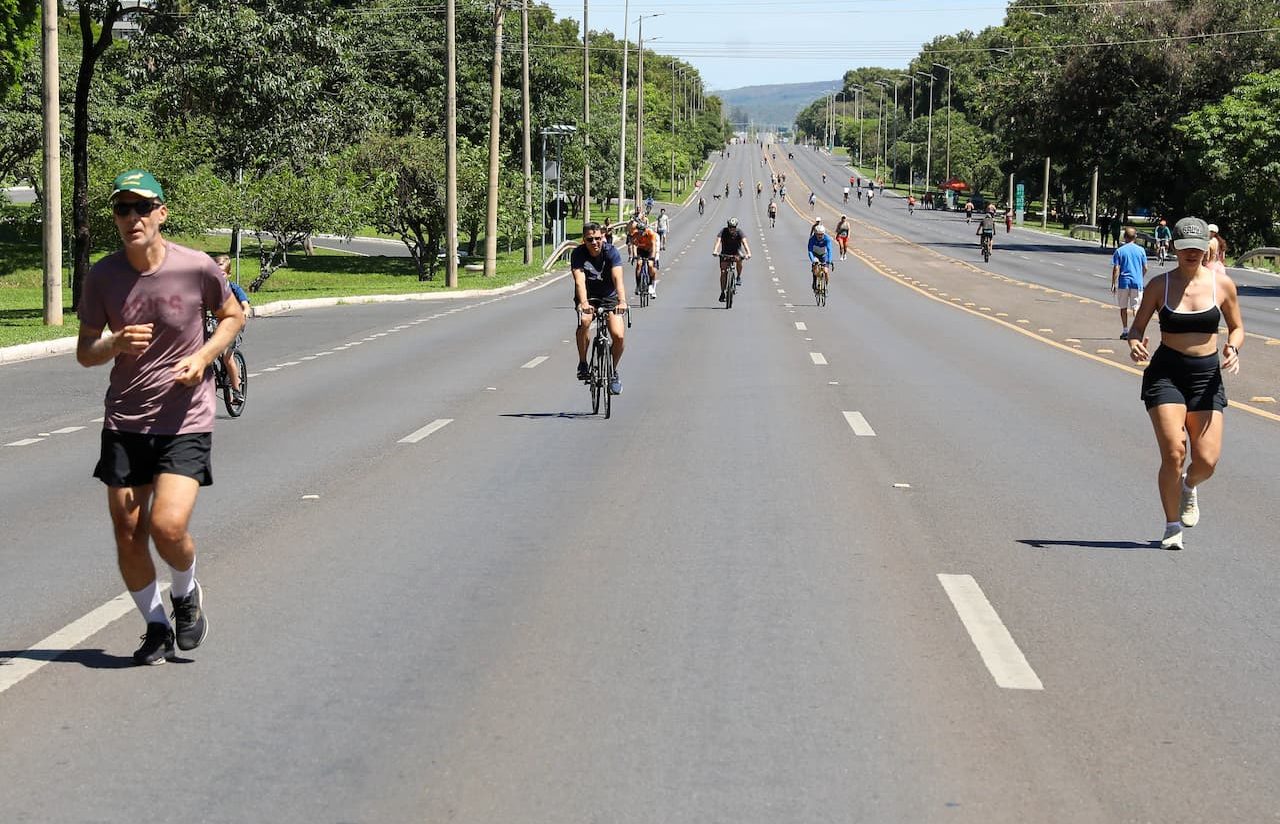 Via bloqueada para veículos reúne famílias, ciclistas e pedestres em atividades ao ar livre ao longo dos 14 km do DF-002