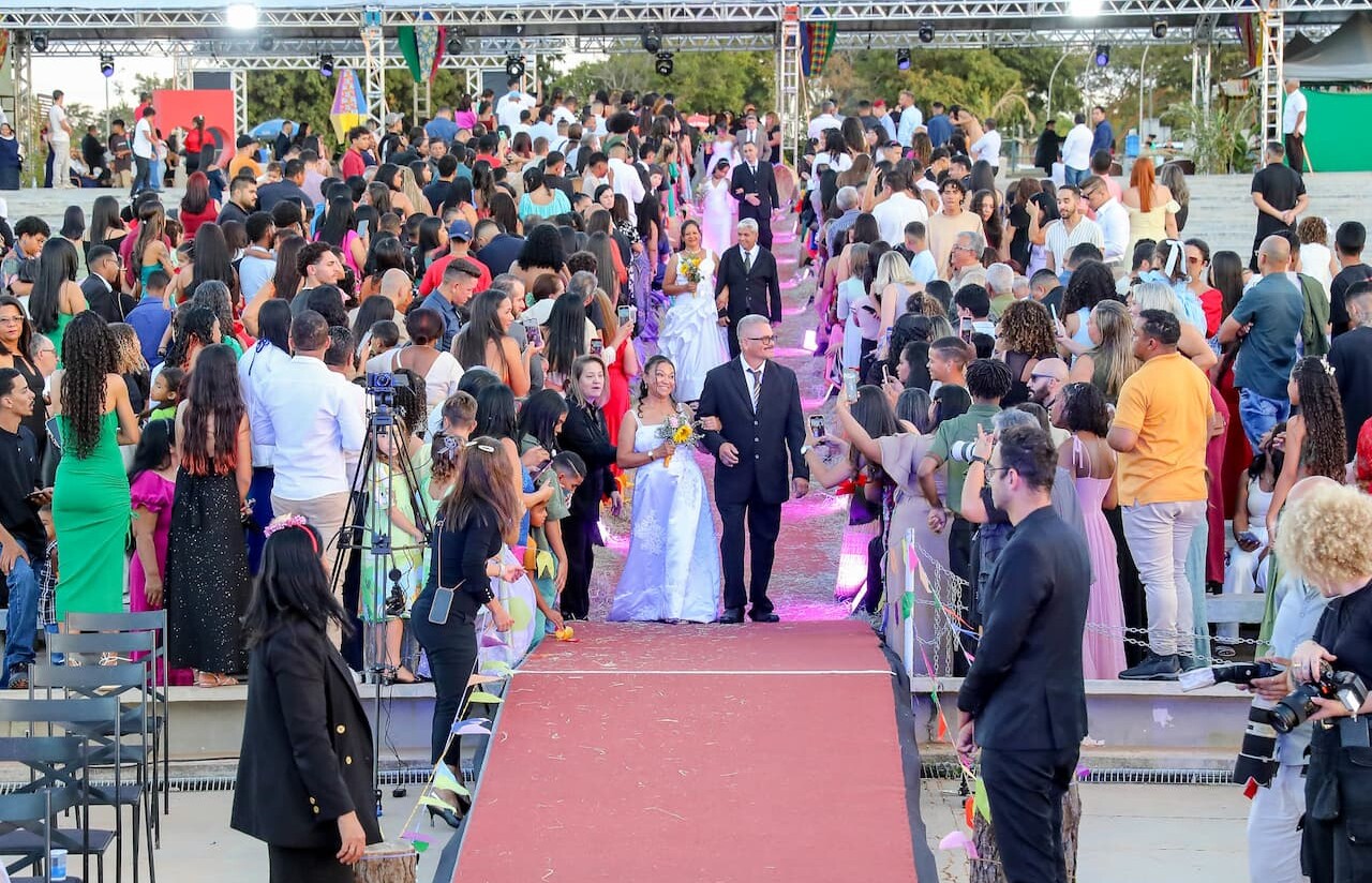 O evento será realizado às 17h, na Concha Acústica, às margens do Lago Paranoá, um dos cartões-postais mais conhecidos da capital. A expectativa é reunir mais de 5 mil pessoas, entre noivos, familiares, convidados e autoridades.