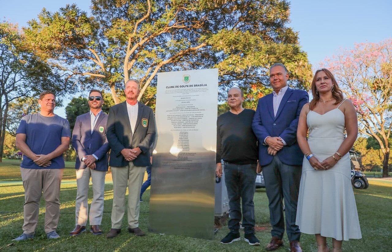 Neste sábado (28), o governador do Distrito Federal, Ibaneis Rocha, participou da cerimônia de aposição da placa que oficializa a concessão de uso do terreno ao Clube de Golfe de Brasília, no Setor de Clubes Sul. A escritura pública garante o direito real de uso, sem opção de compra, por 30 anos. Na ocasião, o governador foi homenageado com a inclusão de seu nome na placa. O evento também marcou a abertura oficial da programação do 94º Aberto Amador de Golfe do Brasil, que será realizado entre os dias 3 e 6 de julho no DF.
