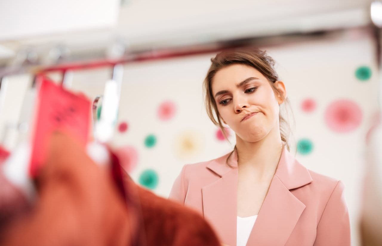 - Examine a peça com atenção: Verifique o acabamento das peças, se há manchas e furos, se o zíper está funcionando, se falta botões, se a costura está boa etc.