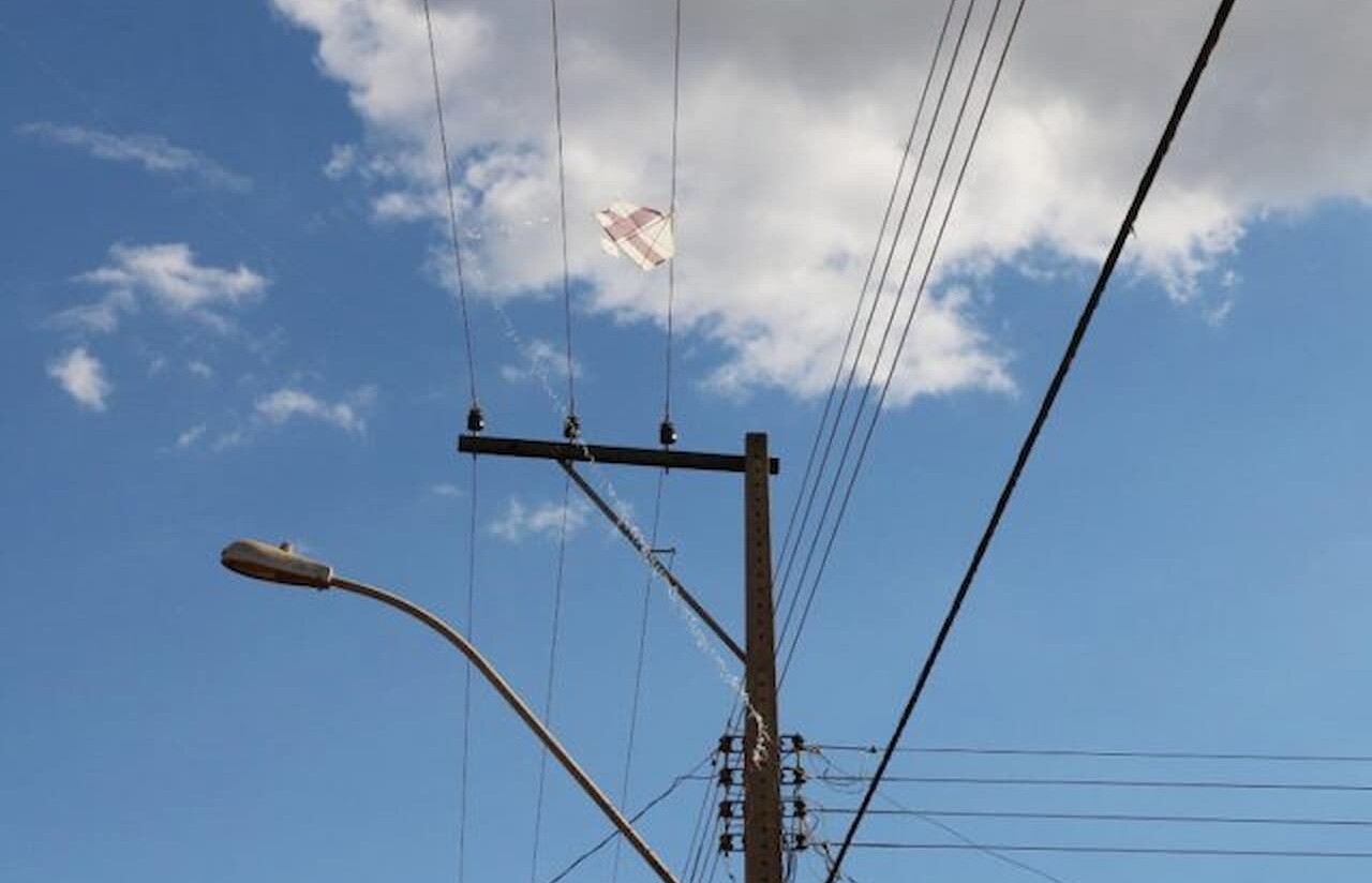 Na rede elétrica, as pipas podem provocar curto-circuito | Foto: Divulgação Neoenergia