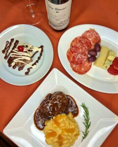 Entre os pratos principais, os casais poderão escolher entre o salmão em crosta de castanha, acompanhado de mousseline de baroa, ou o medalhão de filé mignon com risoto de damasco, combinação que traz equilíbrio entre o sabor marcante da carne e o leve adocicado do risoto.