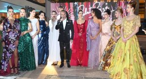 Foto: O organizador com as modelos que desfilaram. Créditos: Paulo Lima