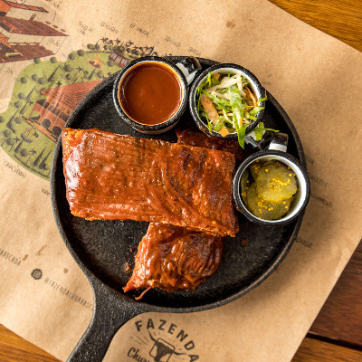 Entre os cortes da parrilla, destaque para o Ancho 350g (R$137), retirado da parte dianteira do contrafilé; o Chorizo 300g (R$117), da parte central do contrafilé; o Flat Iron 300g (R$108), extraído do miolo da paleta; e a Fralda Red 300g (R$121), corte suculento entre a traseira e a costela. Na ala dos defumados, o cliente encontra o Brisket 300g (R$92), peito bovino defumado por 12 horas no estilo texano, servido com coleslaw, picles e molho BBQ de Jack Daniel’s; a Costelinha BBQ (R$84), defumada por seis horas e finalizada no mesmo molho; e o Cupim Defumado 300g (R$80), macio, fatiado e acompanhado de BBQ especial.