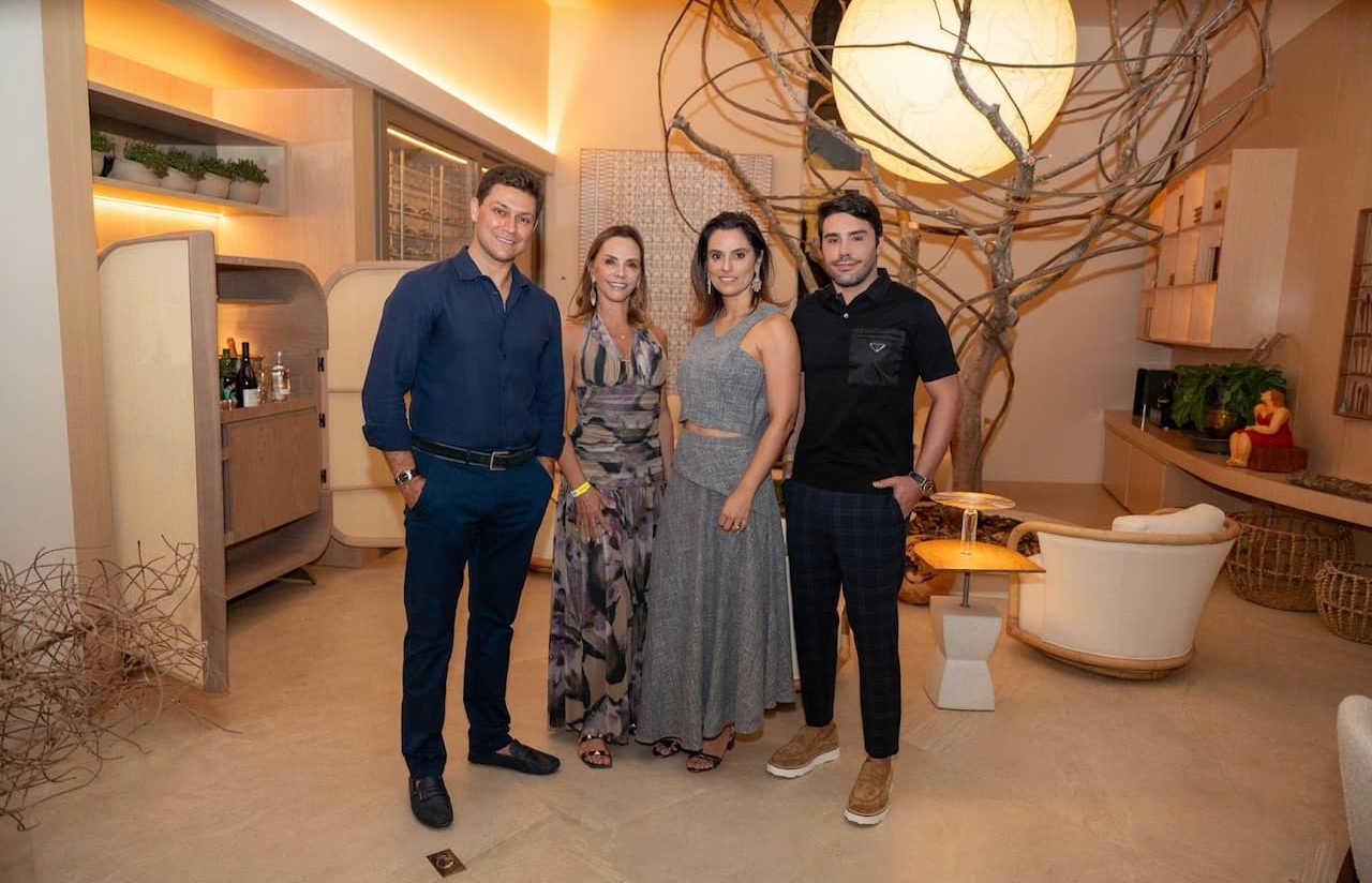 Foto: Felipe Maldonado, CEO da Omnium, ao lado das arquitetas Denise e Juliana Zuba, mãe e filha que assinam projetos marcados por sofisticação e bom gosto, e do Relações Públicas e CEO da MiThi, Thiago Miranda. Créditos: