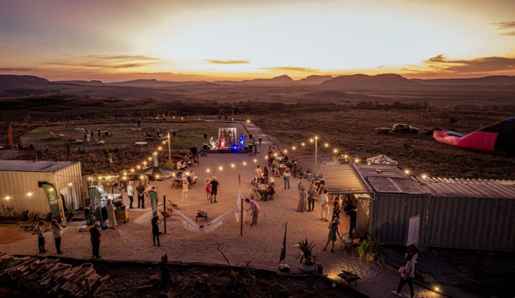 Localizado no Morro da Baliza, a 1.480 metros de altitude e a apenas 5 km de Alto Paraíso de Goiás, o Mirante oferece uma vista 360° da Chapada. O pôr do sol, as noites estreladas e a lua cheia serão pano de fundo para apresentações musicais, que acontecem em meio a fogueiras, lounges aconchegantes e espaços instagramáveis.