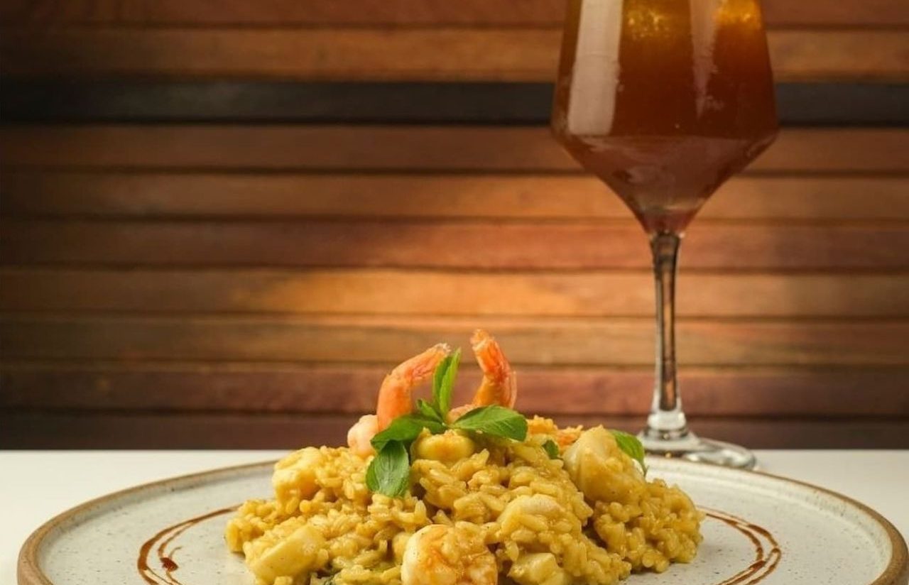 Foto: Risoto de curry com frutos do mar: cremosidade precisa, arroz no ponto e o perfume do Mediterrâneo italiano reinterpretado pelo olhar contemporâneo do Gurumê, em um prato que celebra técnica, memória e sabor à mesa. Crédito: Matheus Ramos/Gurumê