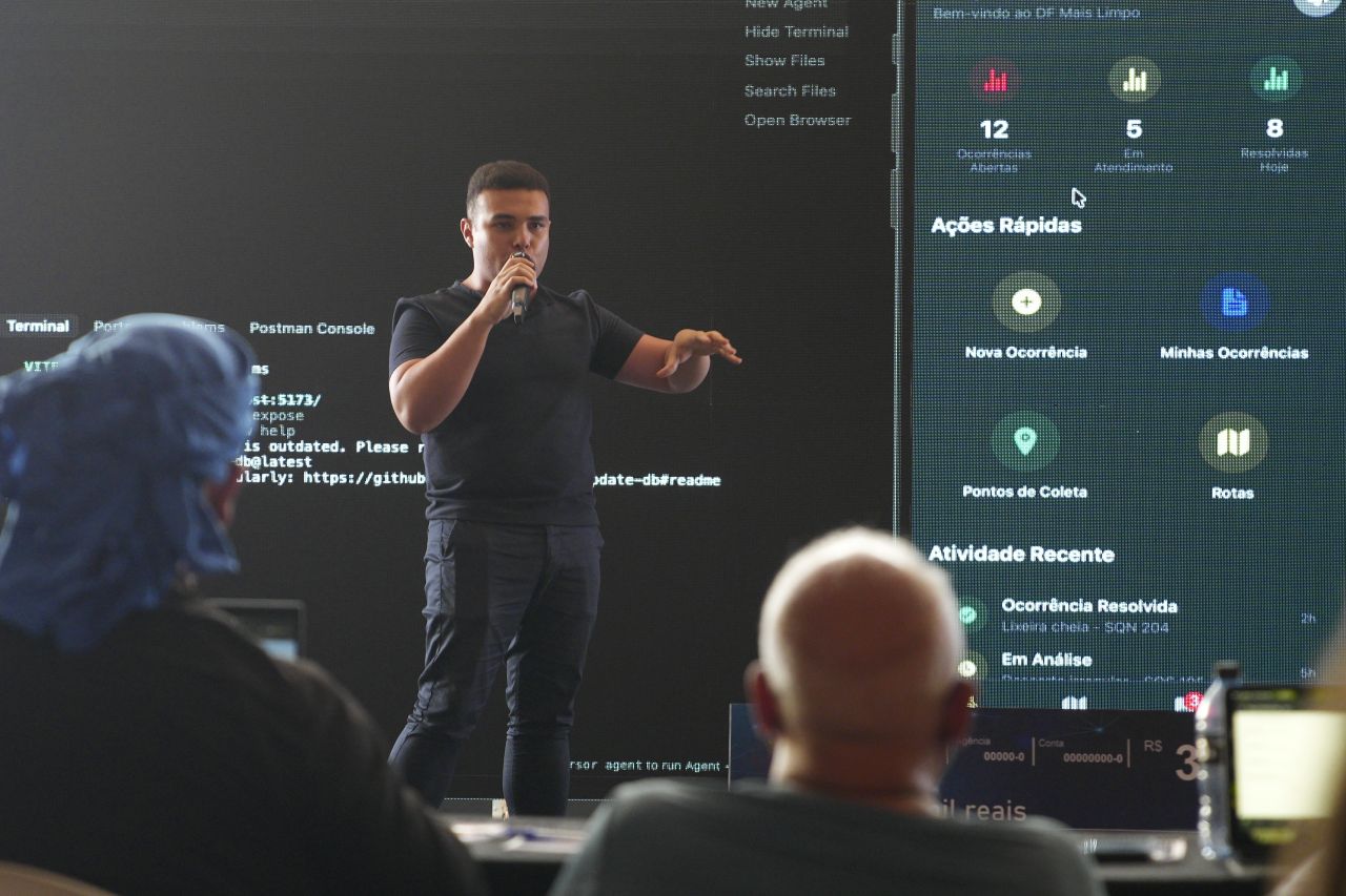 A programação abriu espaço para a inteligência coletiva com o Ideathon 3.0. Fomentada pela Secretaria de Ciência, Tecnologia e Inovação (SECTI-DF), a maratona de inovação ocupou a Galeria 6, trazendo soluções criativas para os desafios urbanos da capital.