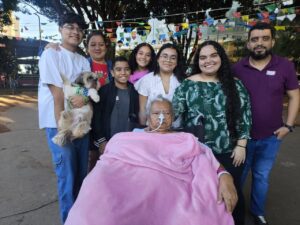 A ação foi organizada pela equipe multidisciplinar da neurologia, que atendeu ao pedido da família. O momento aconteceu no jardim, espaço externo da unidade, e contou com a presença dos netos Amanda (18 anos), Thales (16 anos), Letícia e Luana (gêmeas de 13 anos), Henrique (11 anos), e, claro, do pequeno Ben, que arrancou sorrisos e emocionou a todos.