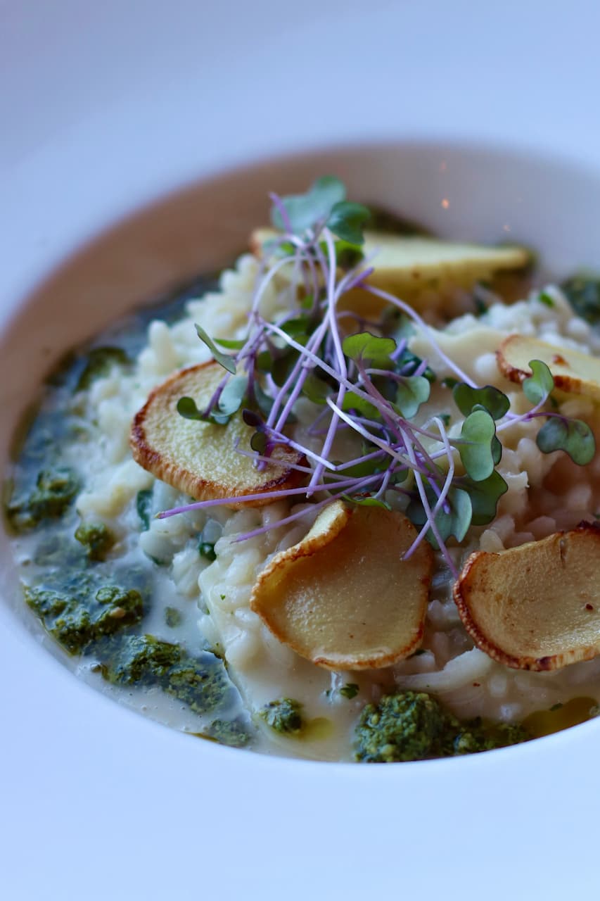 - Risoto de pupunha com pesto de vinagreira Mezanino