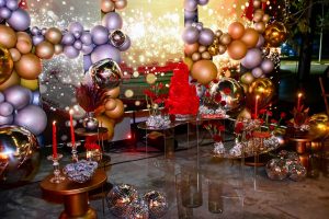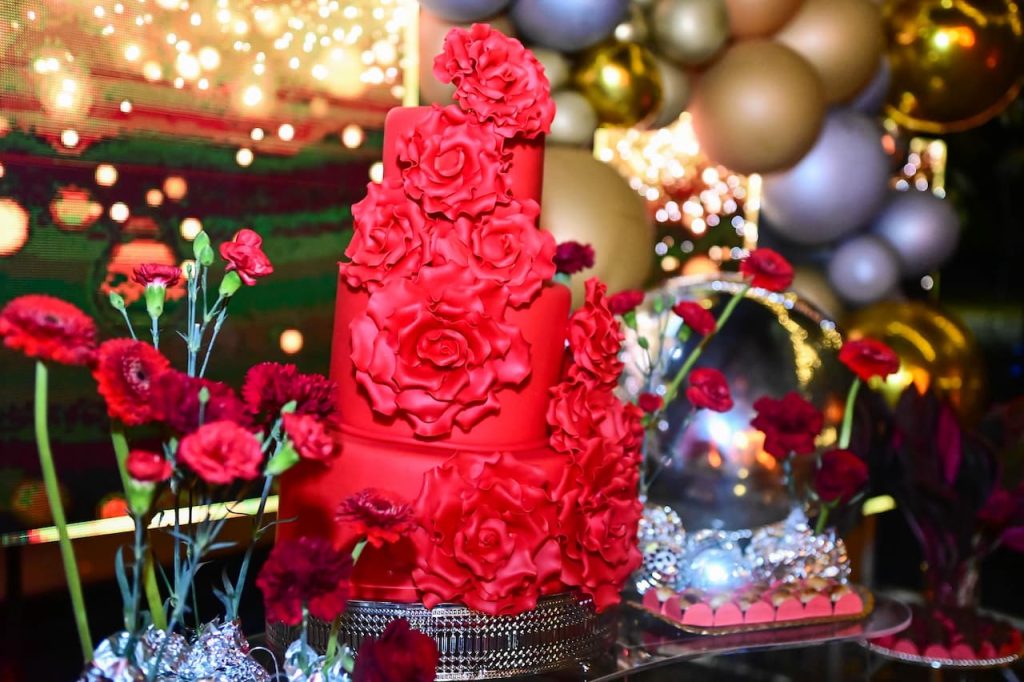 Especialista em decoração, Fran assinou a ambientação do espaço, que ganhou destaque com um telão de LED e uma mesa criativa montada com cubos de acrílico. O cenário foi completado por um bolo vermelho em grande escala, que chamou a atenção dos presentes e se tornou um dos pontos altos da noite. O conceito pop glam conduziu a atmosfera da festa, com DJ e projeções que transformaram o ambiente em uma verdadeira experiência visual e sonora.