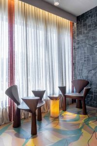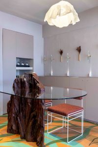 O ambiente também serve de palco para lançamentos de peças de design autoral, como a Estante Tina (Jader Rodrigues), o Banco Guera (GUA Arquitetura), a Cadeira Célia (Danilo Vale) e a Mesa Rios (Tunico Lages). Cada criação, única em forma e material, amplia o conceito sensorial e afetivo da proposta, com uso de recursos sustentáveis, como madeira de queda natural e de reflorestamento certificado.