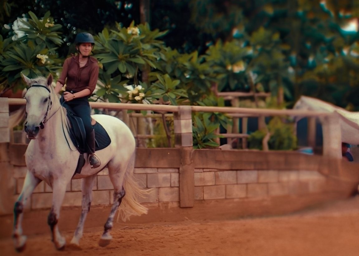 Entre técnica e silêncio, Fernanda Santoro encontra na equitação um exercício diário de presença, escuta e conexão — valores que atravessam sua escrita, seu olhar sobre o bem-viver e a escolha por um modo de vida inspirado pelo tempo e pela natureza. Créditos: Divulgação.