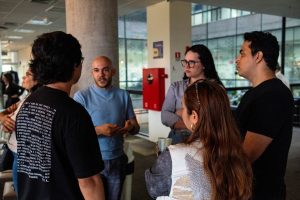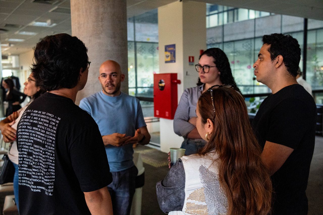 Natália Jaguaribe em roda com Gabriel Nankanishi, Lukas Batista e Felipe Baez