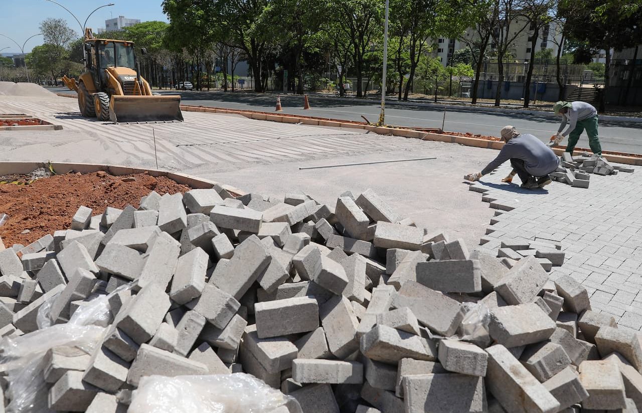 As intervenções seguem avançando em cada quadra. Na 713 Norte, as calçadas e estacionamentos estão concluídos. Na 714, a instalação do piso de bloquetes está em fase final. As quadras 715 e 716 passaram pela fase de demolição e compactação do solo.