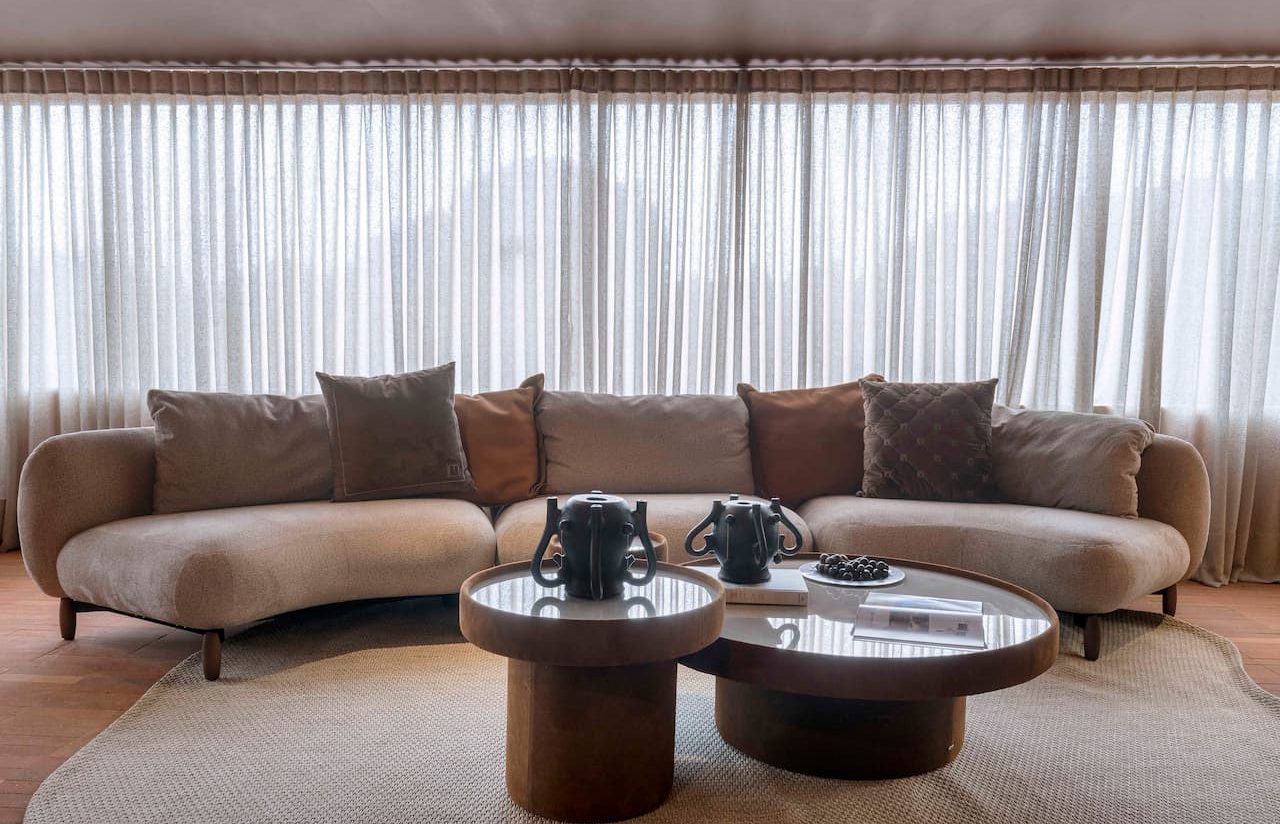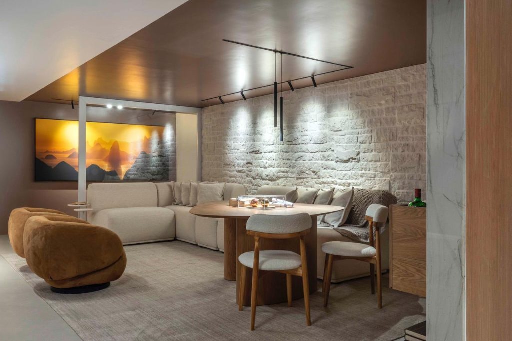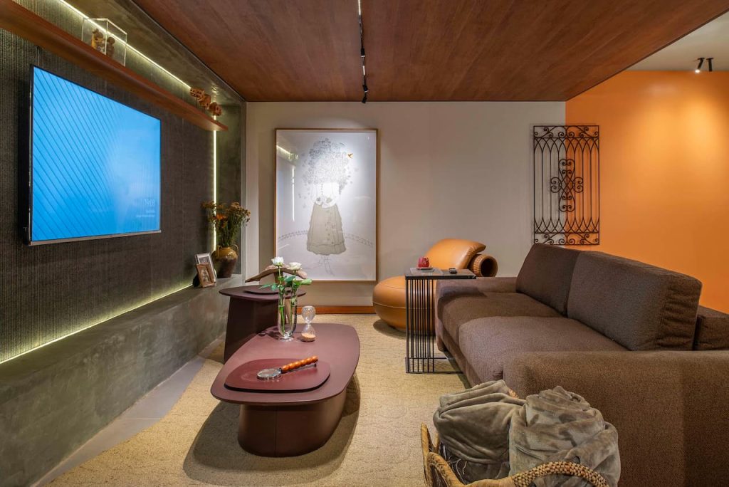 No Bossa Lounge, de Daiana Pontes, a versatilidade e o conforto ganham protagonismo. O ambiente conta com duas poltronas Pipoca, da Salva, que reforçam a proposta de criar um espaço acolhedor e multifuncional.