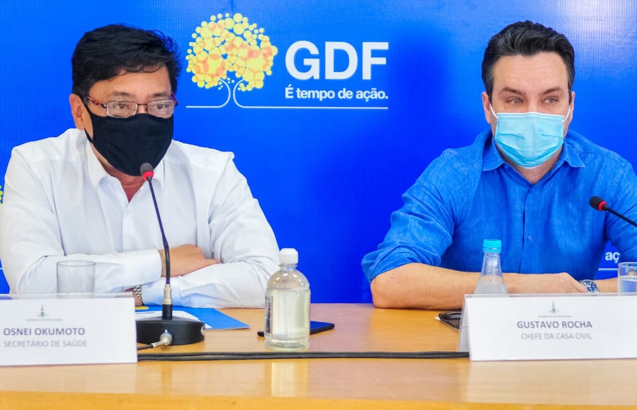 Graças a uma determinação do governador Ibaneis Rocha, a Secretaria de Saúde guardou doses de vacina contra covid-19 para ser aplicada na segunda etapa da imunização, que só é garantida com a aplicação de duas doses do imunizante. Assim, não corre o risco de faltar doses de D2 para quem já tomou a D1, como acontece em vários estados brasileiros. A garantia foi dada nesta segunda-feira (26) pelo secretário da Casa Civil, Gustavo Rocha, e pelo secretário de Saúde, Osnei Okumoto, em coletiva de imprensa no Palácio do Buriti.