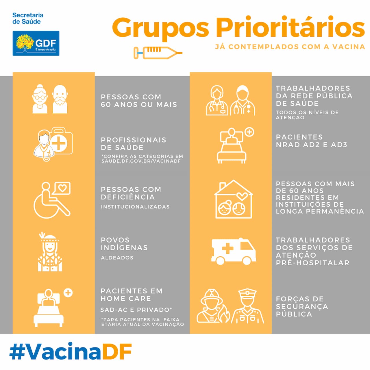 A partir das 8h desta sexta-feira (30), a Secretaria de Saúde inicia a vacinação para quem tem 60 anos ou mais, nas salas de vacina e pontos de vacinação com atendimento a pedestres. Nos drive-thrus, o serviço será iniciado às 9h. A expectativa da pasta é vacinar 50.507 pessoas nas faixas etárias de 60 e 61 anos. O DF conta com 54 pontos de vacinação.